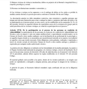 Es por ello que los artículos: 237, 262 y 331 del Código Procesal Penal presentaron la reforma con el fin de asegurar la tranquilidad y el respeto a la dignidad humana de niñas, niños, mujeres y adultos mayores sobrevivientes de violencia.